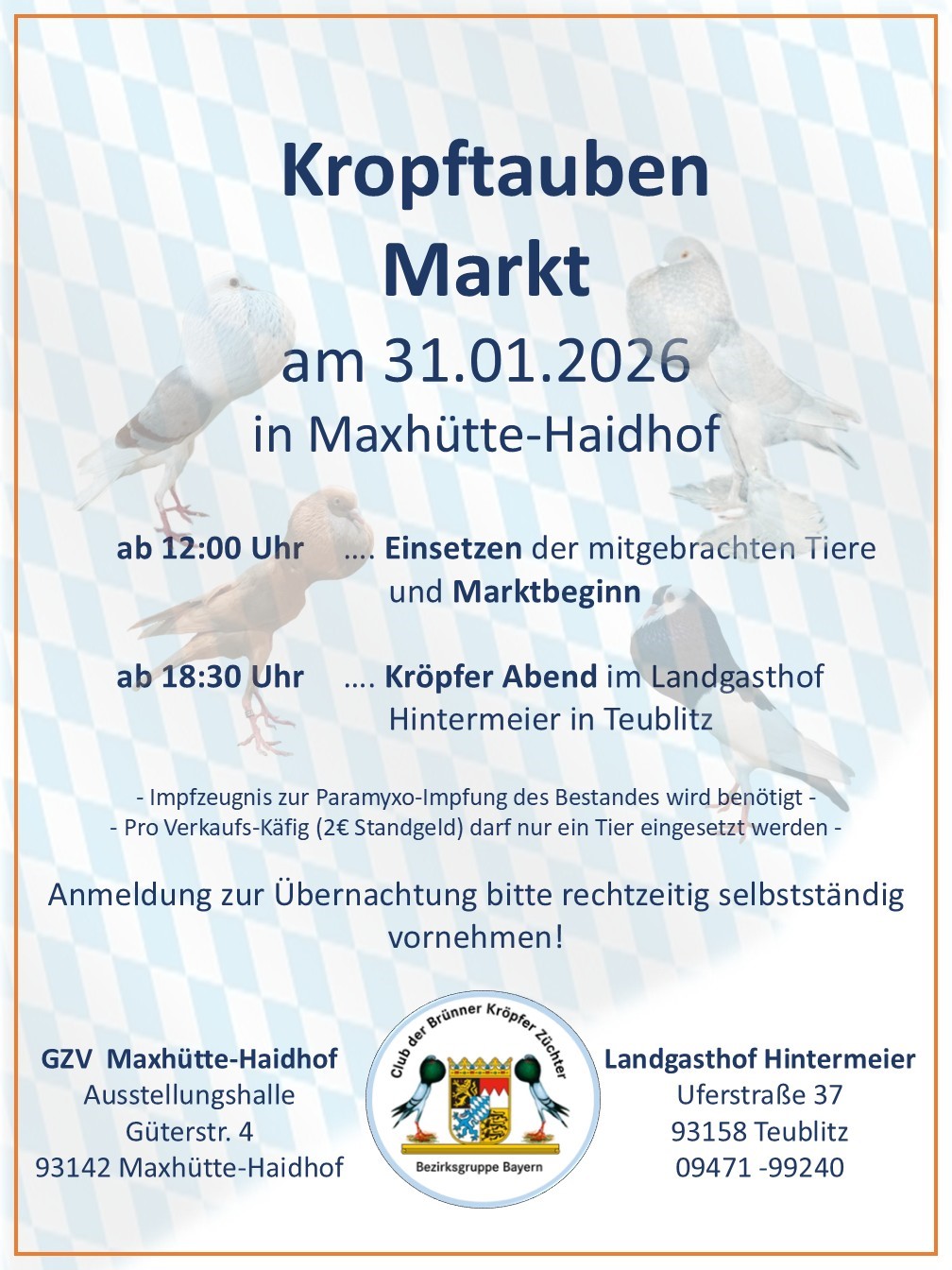 03.01.2026 Neu: Kropftauben-Markt 2026 Kropftauben-Markt - Plakat