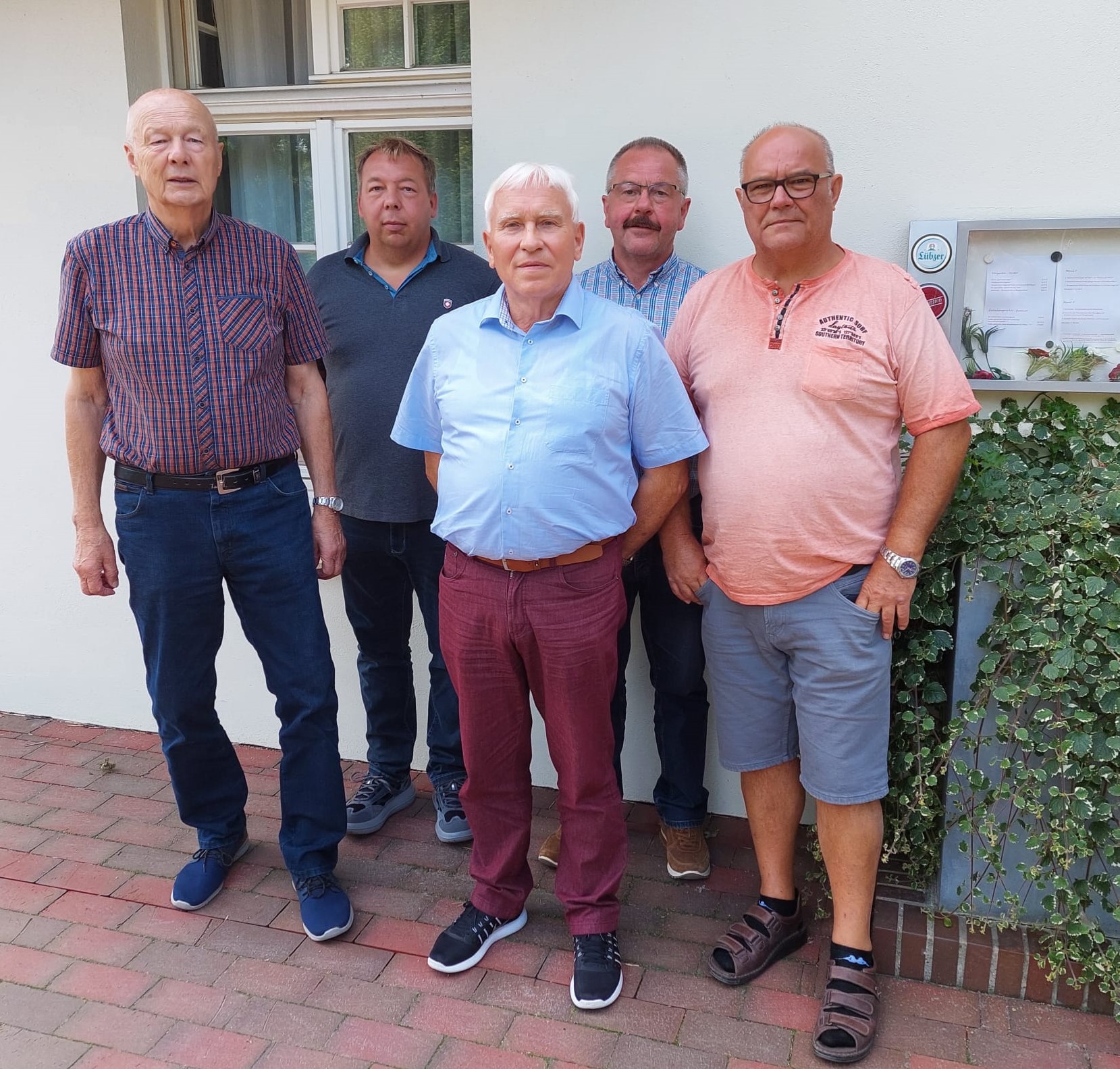 Gruppenfoto Die neu besetzte Vorstandschaft, Gratulation zur Wahl: Im Bild von links: Christoph Taubert - ernannt zum Ehrenvorsitzenden, Sven Schweder - Beisitzer, Dr. Hans Schingen - Zuchtwart, Uwe Weiß - der neue 1.Vorsitzender und Hartmut Buchler - 2.Vorsitzender u. Kassier,